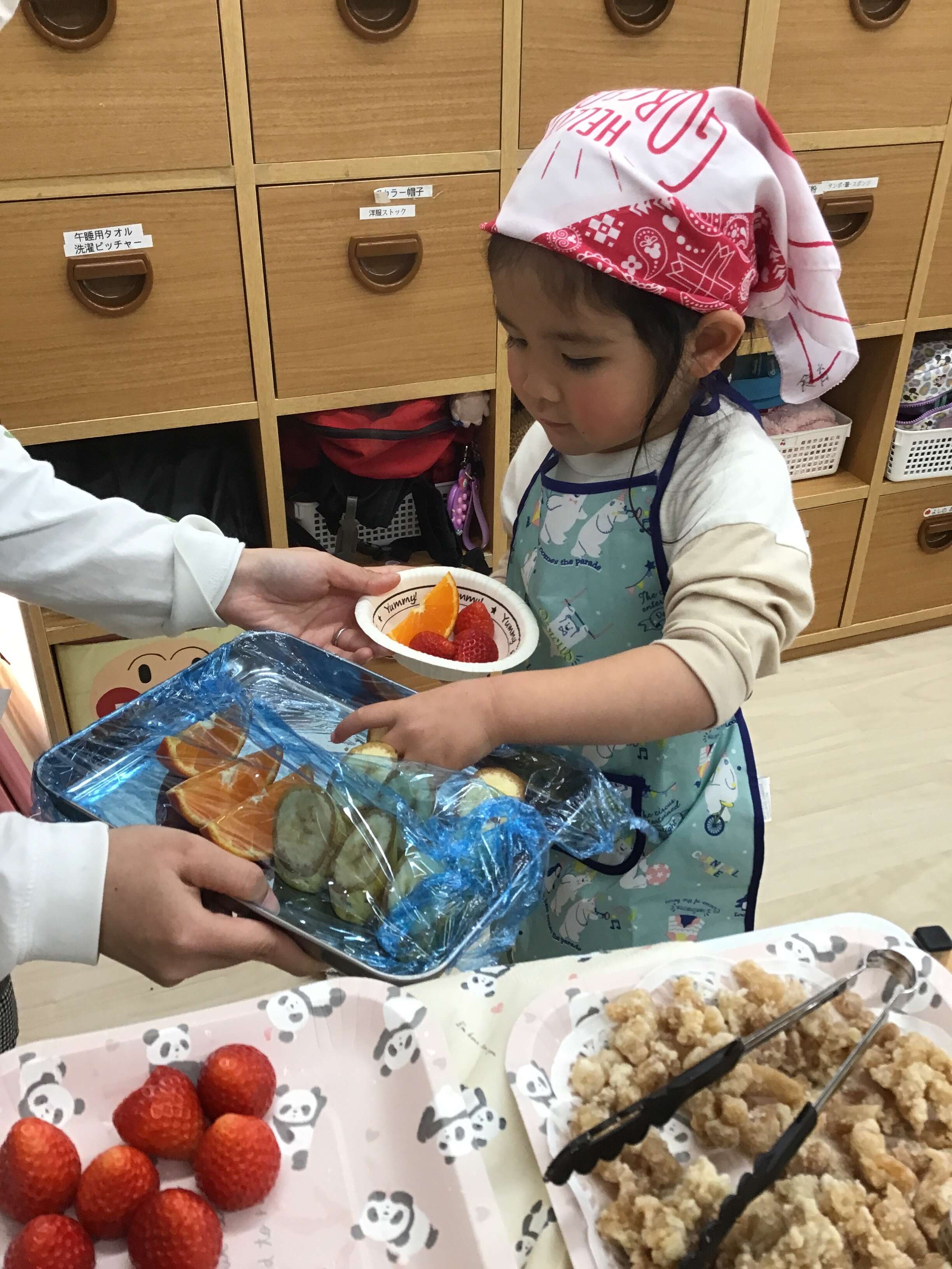 たいよう組さんだけですが、リクエストした唐揚げやフルーツもたっぷり!
